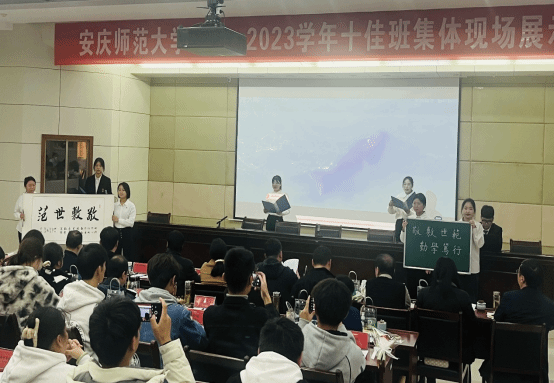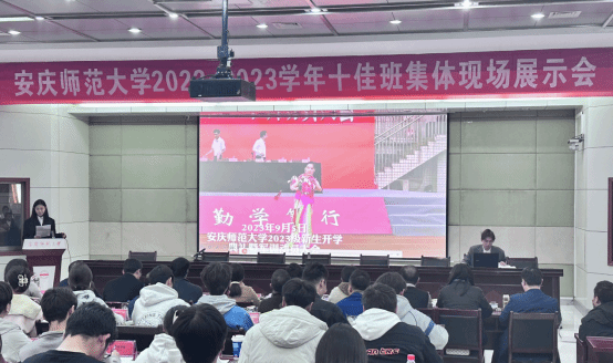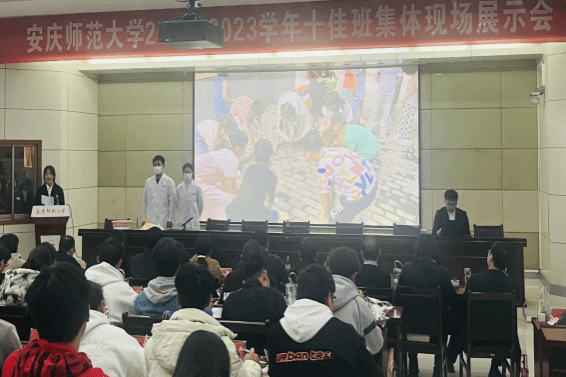 评选会现场,黄梅剧艺术学院表演(黄梅戏表演方向)专业2021级的学生将展台当作舞台,为在场观众带来了特色舞蹈表演,赢得了观众们阵阵掌声。该班学生积极参加校园文化活动和社会参演,曾在安庆市元宵晚会、安庆市“十一”黄梅戏展演周大戏等多个舞台演出,被中国青年报、新华社等相关媒体进行报道,并获得了良好的社会反响。音乐学院2021级舞蹈表演班从“一个中心”“两条主线”“三支队伍”“四种能力”等方面来展示班级建设情况,同时通过现场表演呈现班级学生的良好风貌与专业能力;体育学院体育表演专业2021级3班表演串烧的方式,舞剧、啦啦操、华尔兹轮番上阵……各班级在用PPT展示班级风采的同时,结合现场实验、表演等形式突显专业特色,现场观众纷纷对参赛班集体的创意和活力报以热烈的掌声。