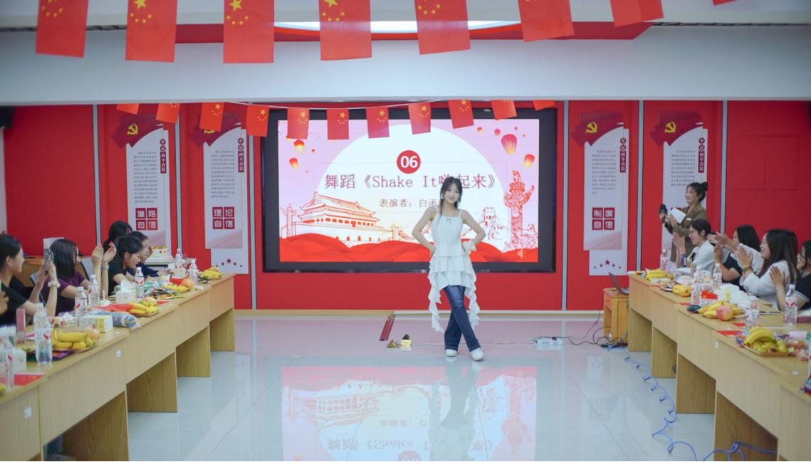 舞蹈《嗨起来》《DDU-DU DDU-DU》活力四射,舞者们用青春姿态点燃全场;配乐朗诵《月光下的中国》深情款款,将对祖国的眷恋娓娓道来;学生公寓物业服务中心主管计娟的独唱《我爱你中国》,更是以饱满的情感传递出对祖国的赤诚热爱,引得师生纷纷跟唱。